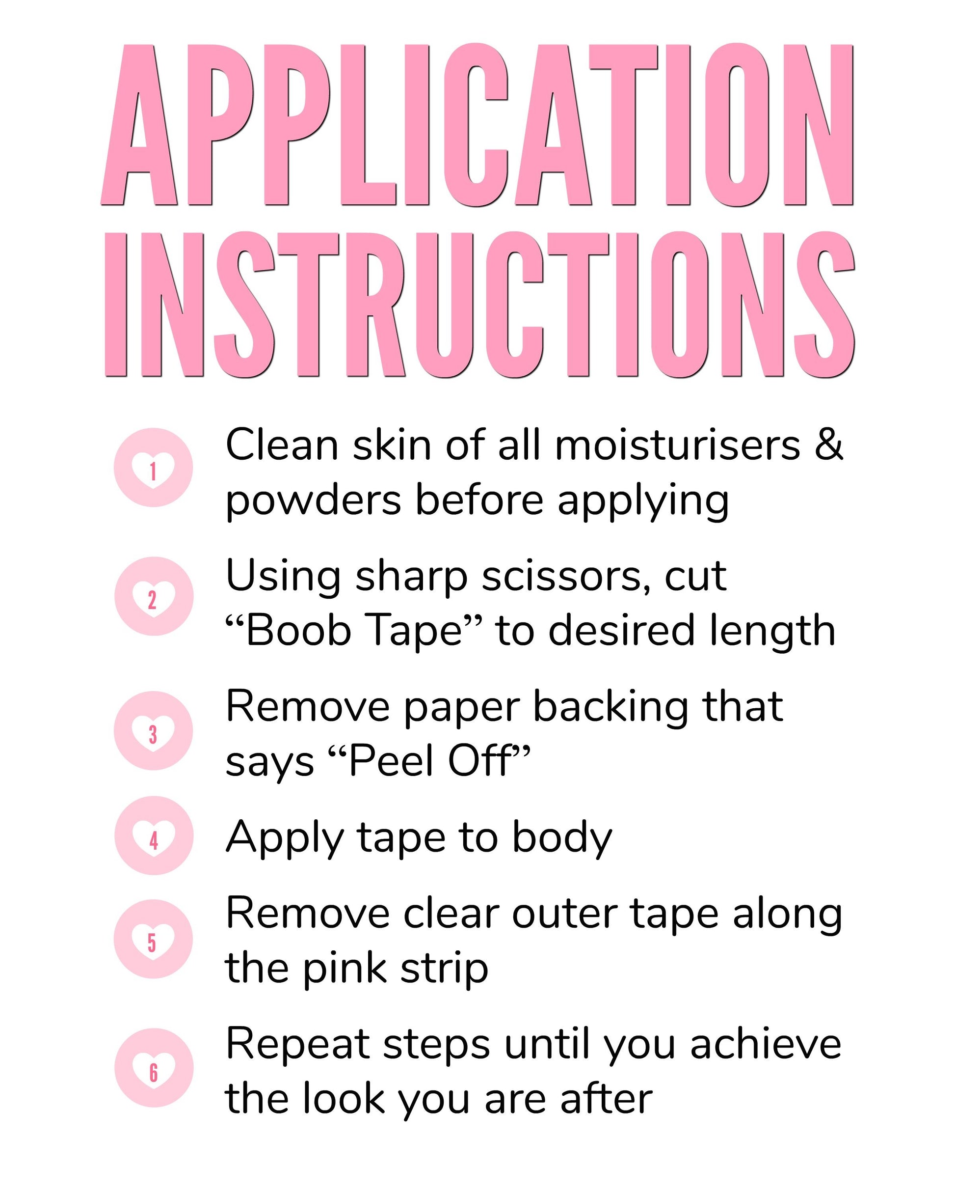 • Lift, flatten, reduce movement, boost, or create cleavage with Boob Tape!